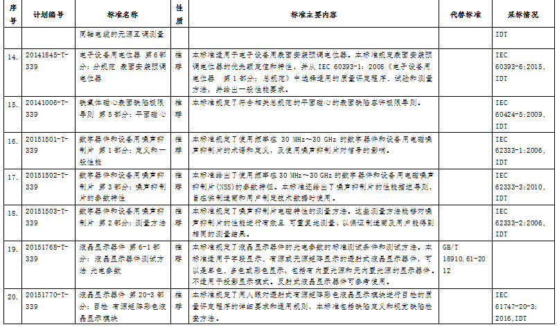根據(jù)標(biāo)準(zhǔn)制修訂計(jì)劃,相關(guān)標(biāo)準(zhǔn)化技術(shù)組織已完成《半導(dǎo)體集成電路沖壓型引線框架》等14項(xiàng)行業(yè)標(biāo)準(zhǔn)和《光伏器件 第2部分:標(biāo)準(zhǔn)光伏器件的要求》等26項(xiàng)國家標(biāo)準(zhǔn)的制修訂工作。在以上標(biāo)準(zhǔn)批準(zhǔn)發(fā)布之前,為進(jìn)一步聽取社會各界意見,現(xiàn)予以公示,截止日期2020年10月23日。