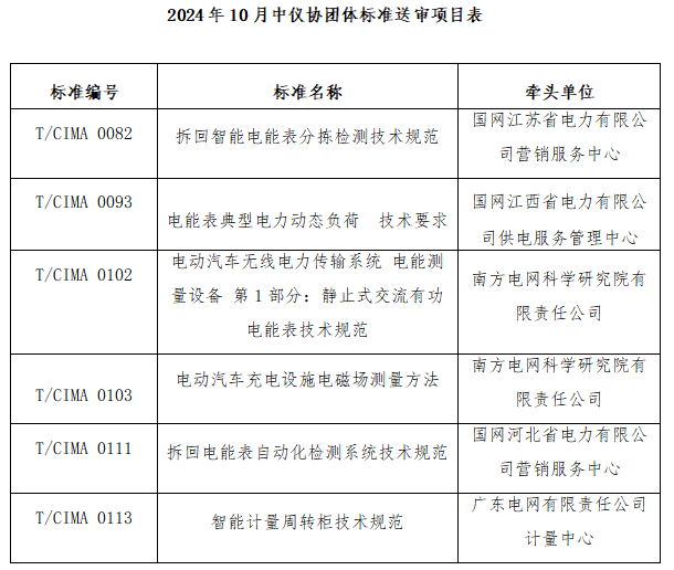 2024年10月 24-25日,中國儀器儀表行業(yè)協(xié)會(以下簡稱“協(xié)會”) 以視頻會議形式組織召開了《電能表典型電力動態(tài)負荷 技術(shù)要求》等6項團體標準(項目信息詳見附表)送審稿審查會。來自國網(wǎng)山東省電力公司電力科學研究院、廣東電網(wǎng)有限責任公司計量中心、中國電力科學研究院計量研究所、國網(wǎng)浙江省電力有限公司營銷服務(wù)中心、廣西電網(wǎng)計量中心、中國電力科學研究院有限公司、國網(wǎng)河南省電力公司營銷服務(wù)中心、國網(wǎng)山東省電力公司、黑龍江省電工儀器儀表工程技術(shù)研究中心有限公司的九位專家組成審查組,國網(wǎng)山東省電力公司電力科學研究院的徐民教授級高工擔任組長。會議由協(xié)會副秘書長程紅主持。協(xié)會及電工儀表分會的團體標準工作人員、標準主要起草人參加了本次會議。