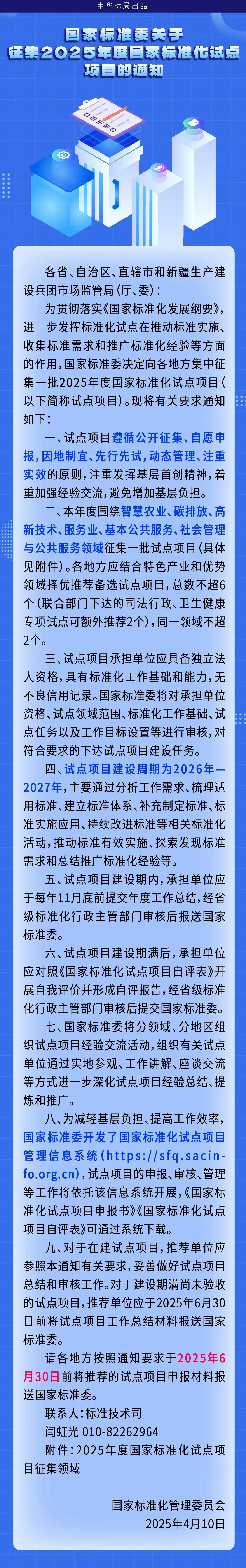 國家標準委關于征集2025年度國家標準化試點項目的通知