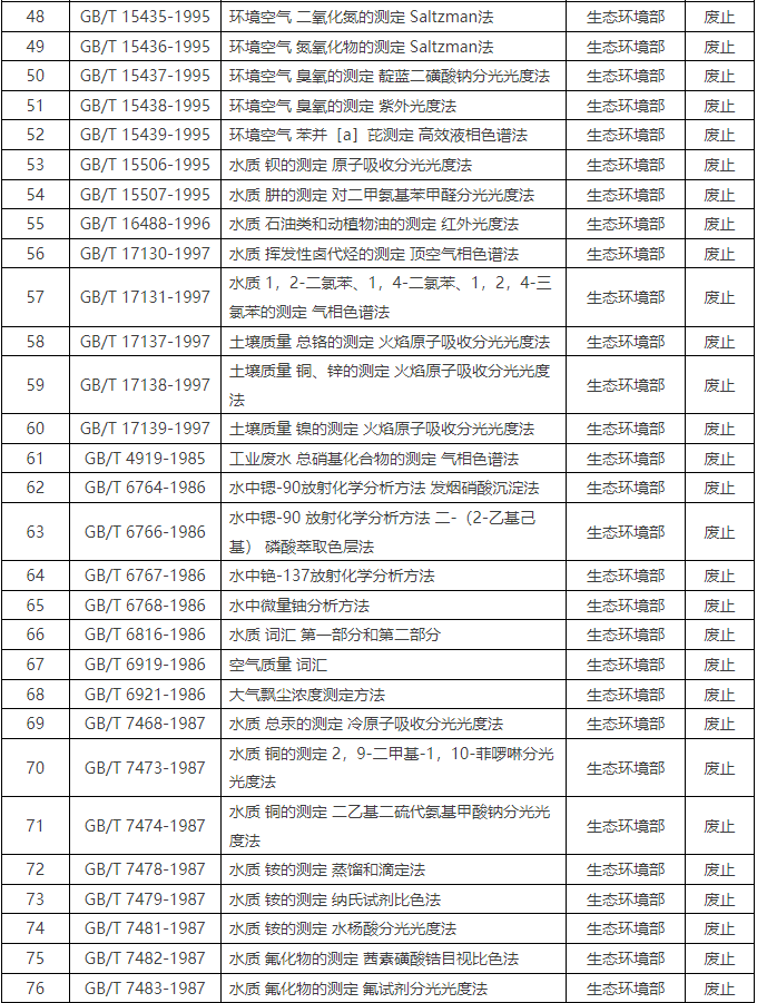 國家標準化管理委員:84項環境監測方法標準被廢止