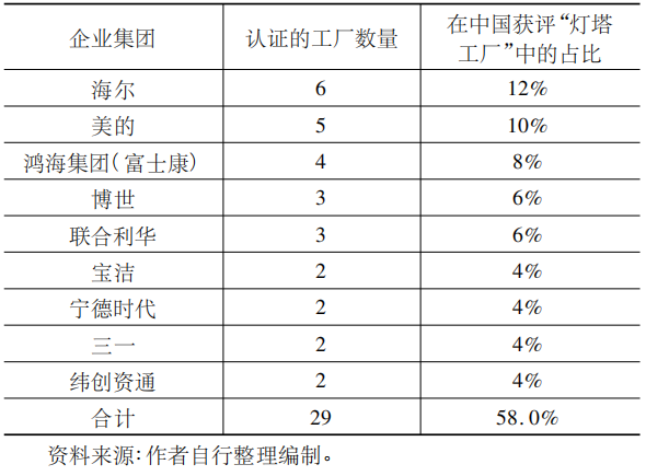 表4 中國企業(yè)集團獲評“燈塔工廠”認證數(shù)量及占比