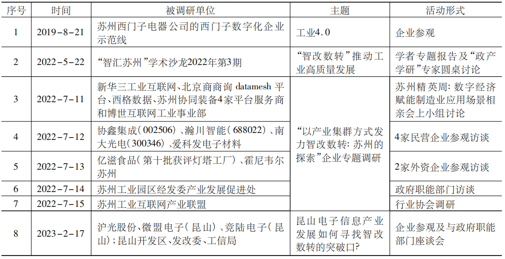 表5 蘇州制造業(yè)數(shù)字化改造專題調(diào)研活動清單