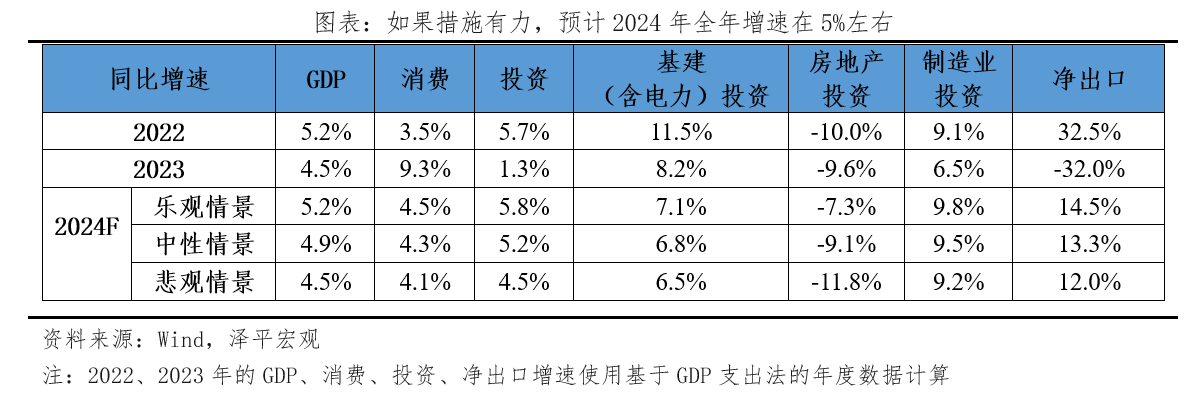 3.2 分情形測算:如果措施有力,預計2024年全年增速在5%左右
