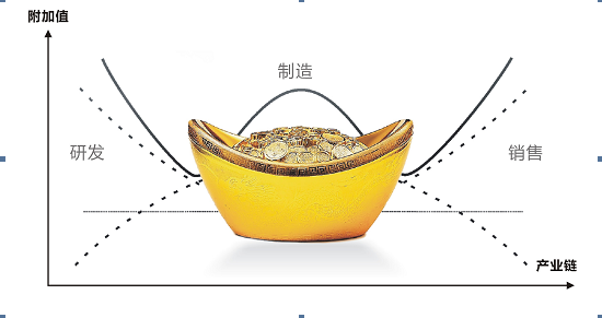 國智造”的華麗轉(zhuǎn)身。根據(jù)“微笑曲線”理論,產(chǎn)品的附加值更多體現(xiàn)在兩端,即設計和銷售,處于中間環(huán)節(jié)的制造的附加值最低。但是在高精尖制造業(yè)領域,卻呈現(xiàn)出“倒微笑曲線”,即高附加值主要來自于高度自動化、精益化的制造環(huán)節(jié),研發(fā)和營銷的附加值屈居其次。二者疊加形成“元寶曲線”,實現(xiàn)了集成專業(yè)化和制造專業(yè)化的價值共生,使得企業(yè)盈利模式多樣化,盈利點和價值分布點增多,通過相關業(yè)務之間的協(xié)同,能夠?qū)崿F(xiàn)“1+1>2”的目標。