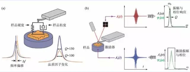 圖6 (a)AFM探針—樣品接觸的Kelvin—Voigt力學模型;(b)頻帶激勵模式的原理示意圖