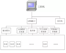本設計中的智能壓力儀表自動標定裝置主要由工控機、測試儀器、通訊巡檢模塊、環境溫箱、溫箱控制器、管路閥門、增壓泵等組成。