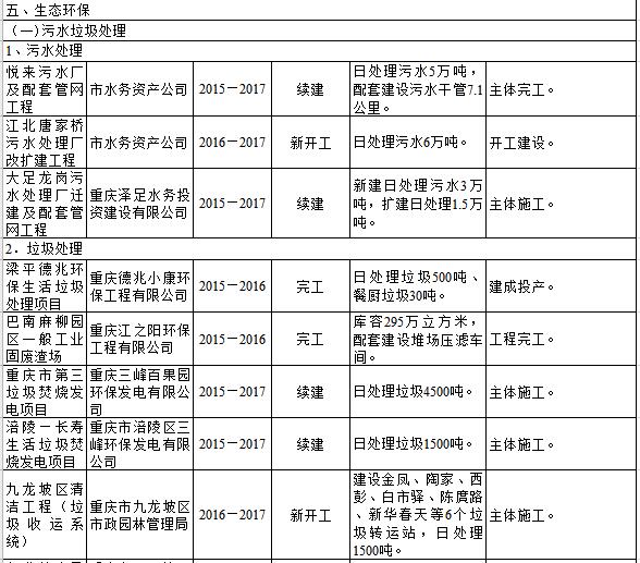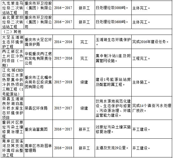 重慶市2016年重點建設(shè)項目名單(節(jié)能環(huán)保篇)