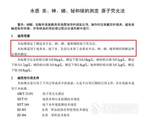 水質(zhì) 汞、砷、硒、鉍和銻的測定 原子熒光法 |
