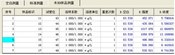 備注: (1)序號1和2為“水樣一”,序號3為“水樣一”的加標,加標濃度為7ng/mL; (2)序號5、6和7為“水樣二”,序號4為“水樣二”的加標,加標濃度為7ng/mL; (3)經(jīng)計算“水樣一”中含量為56.89 ng/mL,加標回收率為99.84%; (4)經(jīng)計算“水樣二”中含量為65.03 ng/mL,加標回收率為95.24%。 |