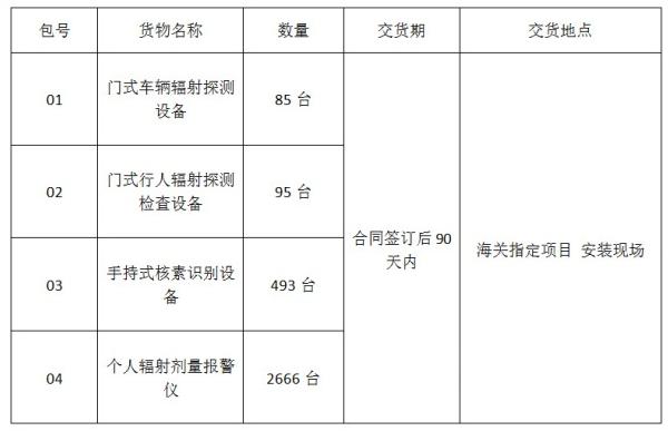 8月4日,中國政府采購網發布公告,海關總署將針對2017年輻射探測設備采購項目進行公開招標。項目名稱:海關總署2017年輻射探測設備采購項目,項目編號:HG17GK-A0101-D053,開標時間:2017年08月24日 09:00。