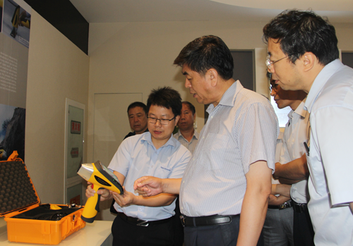 技術人員向專家組介紹便攜式X熒光光譜儀