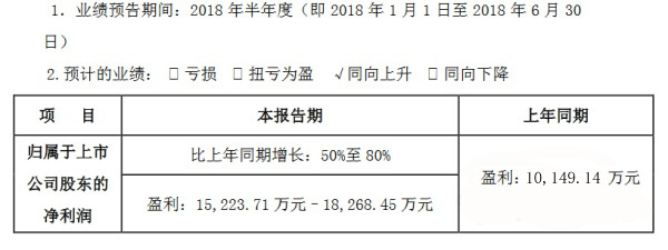 [導(dǎo)讀] 聚光科技半年報(bào)預(yù)測(cè)顯示,2018年上半年聚光科技?xì)w屬于上市公司股東的凈利潤(rùn)預(yù)計(jì)為1.52-1.83億元,比上年同期增長(zhǎng)50%-80%。