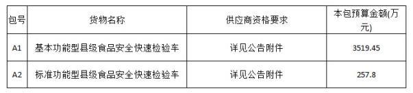 日前,山東省食品藥品監督管理局發布縣級食品安全快速檢驗車招標公告,預算3777.25萬元進行縣級食品安全快速檢驗車的采購,包括81輛基功能型縣級食品安全快速檢驗車(預算3519.45萬元),以及4輛標準功能型縣級食品安全快速檢驗車(257.8萬元)。