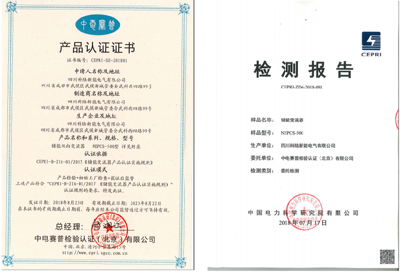 8月23日,由深圳市科陸電子科技股份有限公司(以下簡(jiǎn)稱“科陸”)全資子公司——四川科陸新能電氣有限公司研制的儲(chǔ)能變流器NEPCS-500和NEPCS-250,獲得中國電力科學(xué)研究院(以下簡(jiǎn)稱“中國電科院”)和中電賽普檢驗(yàn)認(rèn)證(北京)有限公司(以下簡(jiǎn)稱“中電賽普”)頒發(fā)的國內(nèi)首張儲(chǔ)能變流器產(chǎn)品認(rèn)證證書,標(biāo)志科陸儲(chǔ)能變流器已引領(lǐng)行業(yè)尖端技術(shù)水平。