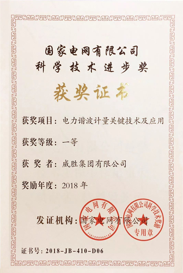 近日,威勝集團(tuán)參與的“電力諧波計(jì)量關(guān)鍵技術(shù)及應(yīng)用”項(xiàng)目獲得國家電網(wǎng)有限公司科學(xué)技術(shù)進(jìn)步獎(jiǎng)一等獎(jiǎng)。