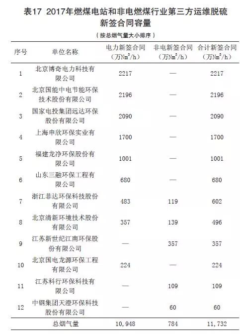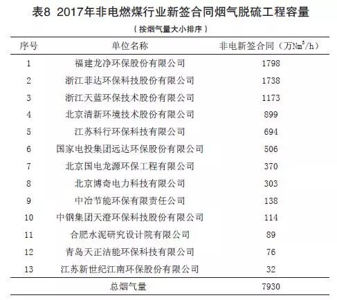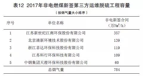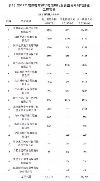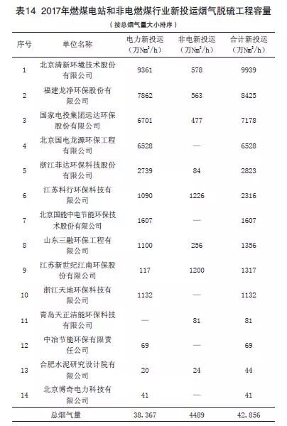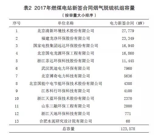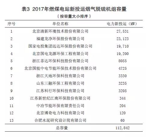 (2)2017年度燃煤煙氣全行業(yè)新投運(yùn)脫硫工程容量