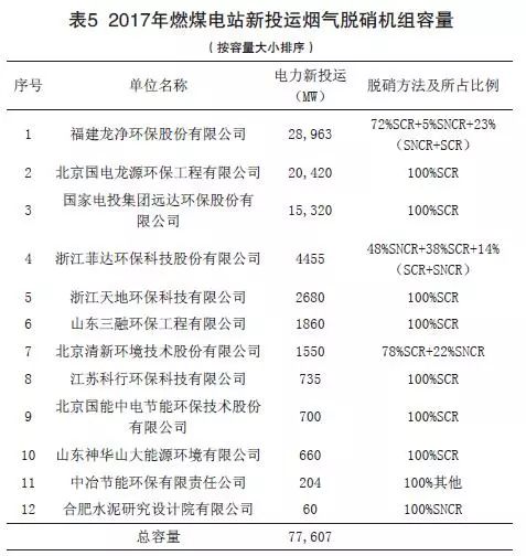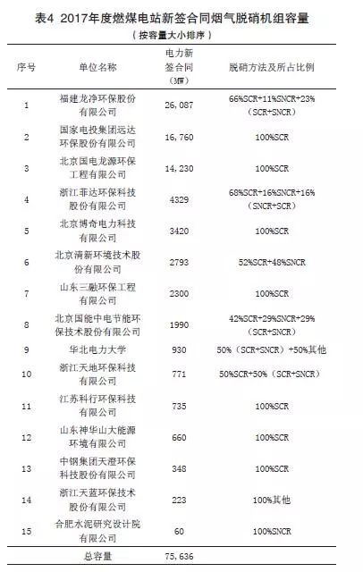 (4)2017年燃煤電站新投運(yùn)的煙氣脫硝工程機(jī)組容量