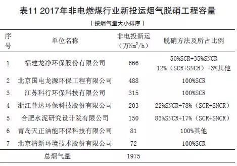 (4)2017年非電燃煤行業(yè)新投運(yùn)脫硝工程容量