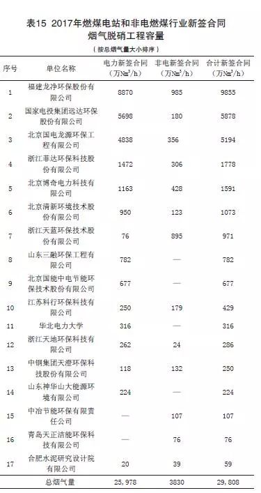 (3)2017年燃煤煙氣全行業(yè)新簽脫硝工程合同容量