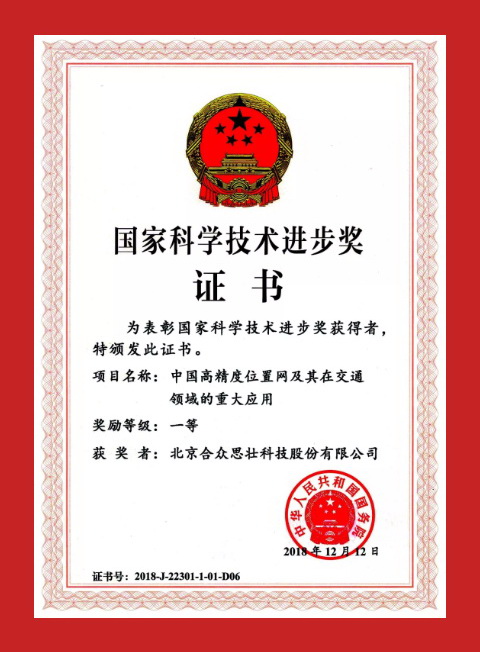 2019年1月8日上午,中共中央、國務院在北京隆重舉行2018年度國家科學技術獎勵大會。習近平、李克強、王滬寧、韓正等黨和國家領導人出席會議活動。北京合眾思壯科技股份有限公司(股票代碼:002383)參與完成的“中國高精度位置網(wǎng)及其在交通領域的重大應用”項目,榮獲國家科技進步一等獎。
