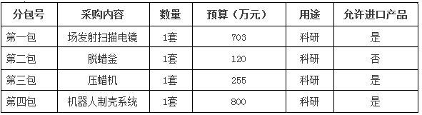 注:包括場發(fā)射掃描電子顯微鏡壹套、落地冷凍高速離心機(jī)壹套、熱重分析儀壹套、差示掃描量熱分析儀壹套,接受進(jìn)口產(chǎn)品投標(biāo)。