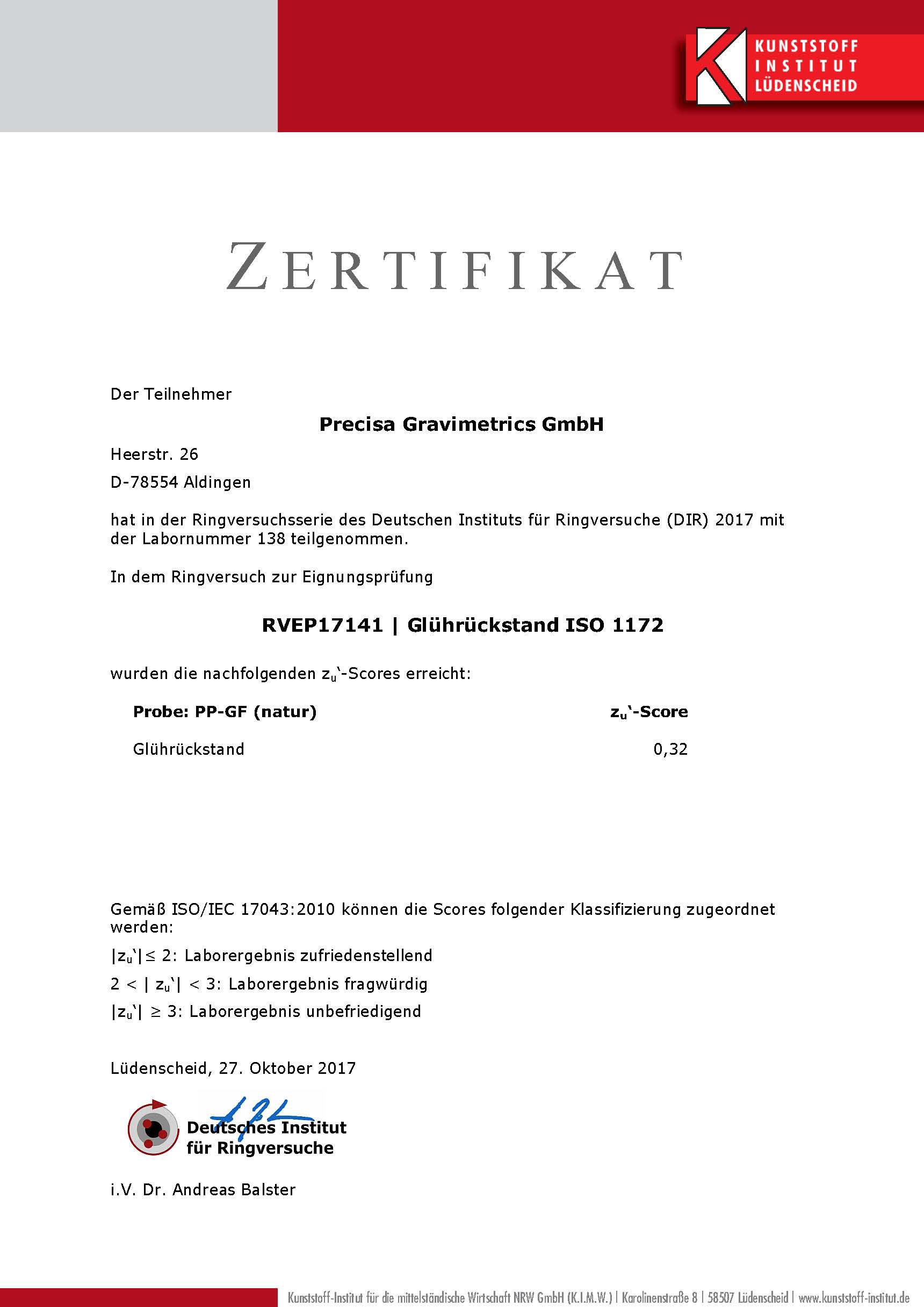 灰分含量的測試方法依據(jù)國際標準DIN EN ISO 1172,采用高溫煅燒的方法對兩種增強塑料樣品進行灰分含量的測定。測試結(jié)果及prepASH檢測合格證書如下: