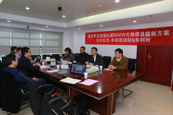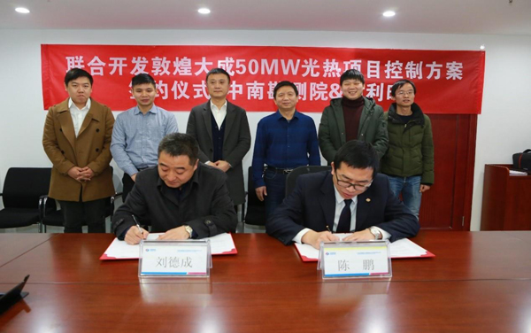 2019年2月21日,杭州和利時自動化有限公司(以下簡稱“杭和”)與中國電建集團(tuán)中南勘測設(shè)計研究院有限公司(以下簡稱“中南院”)舉辦了“聯(lián)合開發(fā)世界首座熔鹽線性菲涅爾式太陽能光熱發(fā)電商業(yè)化示范電站(敦煌大成50兆瓦光熱發(fā)電項目)控制方案合作協(xié)議”簽約儀式。雙方將整合各自優(yōu)勢資源,增強(qiáng)雙方團(tuán)隊協(xié)作能力,針對國內(nèi)光熱電站全廠聯(lián)動控制領(lǐng)域的空白及反饋滯后、多因素耦合的控制難點,共同負(fù)責(zé)儲換熱系統(tǒng)及全廠聯(lián)動控制策略的制定,提升我國在光熱電站全廠聯(lián)動控制領(lǐng)域的競爭力。中南院副總經(jīng)理陳鵬、新能源院院長劉小松、新能源院熱電所副所長徐燦君、新能源院熱電所副所長王佳明,杭和總裁助理劉德成、新能源行業(yè)部總經(jīng)理沈長虹等領(lǐng)導(dǎo)參加了簽約儀式,見證這一重要時刻。