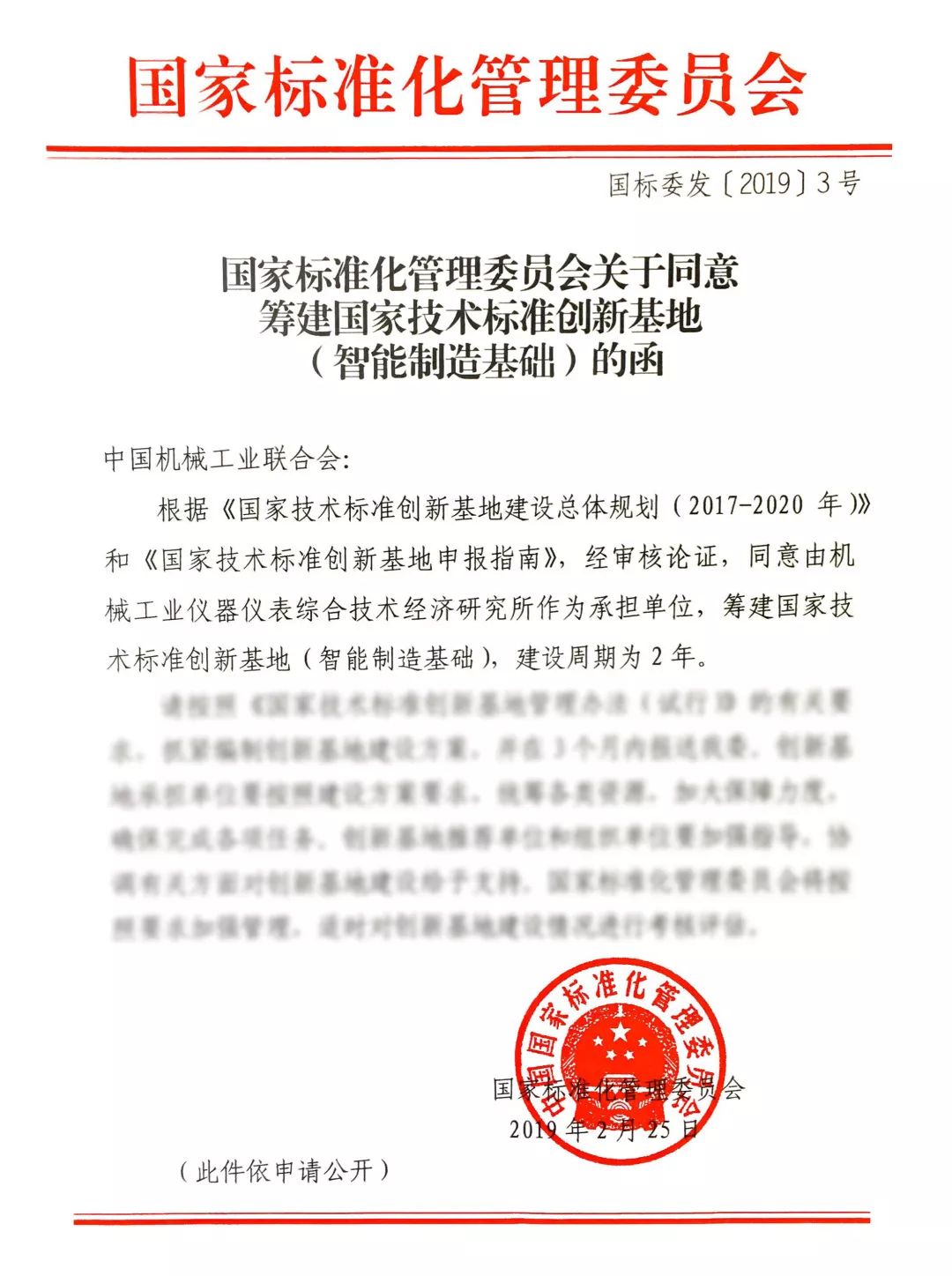 2019年2月25日,國家標(biāo)準(zhǔn)化管理委員會(以下簡稱國標(biāo)委)發(fā)文(國標(biāo)委發(fā)函[2019]3號)同意由機(jī)械工業(yè)儀器儀表綜合技術(shù)經(jīng)濟(jì)研究所(以下簡稱儀綜所)作為承擔(dān)單位,籌建國家智能制造基礎(chǔ)技術(shù)標(biāo)準(zhǔn)創(chuàng)新基地。