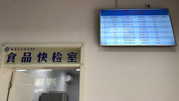 校園食品快檢室每天會對所有食材進行至少10個批次的檢測,同時會對食材進行留樣處理。在檢測的過程中,如果發(fā)現有異常的情況,將再次進行復檢,若復檢結果仍為異常,將立即停止使用并進行封存,同時報區(qū)食藥監(jiān)部門進行處理。此外,校園食品快檢室還將現場公示每日各批次食材的檢測結果。