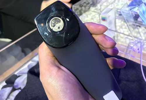 X-Spect整體重量大概跟一部手機(jī)差不多,看X-Spect的反面,就可以看到核心部件——SE的近紅外光譜掃描傳感器,看外觀尤其像手機(jī)內(nèi)置攝像頭。