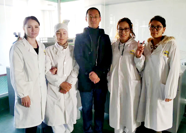 海光工程師徐明與哈薩克斯坦金駱駝公司檢測人員在儀器前合影
