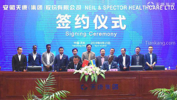 4月15日下午,安徽天康集團與盧旺達Neil & Spector Healthcare Ltd.(NS公司)簽約儀式在集團會議中心舉行。天長市副市長周繼安發表重要講話,安徽天康集團董事長趙寬、盧旺達NS公司董事長威爾遜分別致辭,天長市經信局、商務局及發改委相關領導出席儀式。簽約儀式由集團總經理毛文章主持。