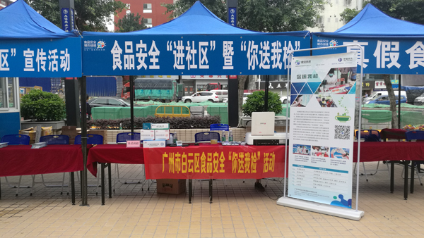 5月14號(hào),為提高廣大消費(fèi)者的食品安全意識(shí),守護(hù)白云區(qū)的食品安全環(huán)境,廣東中檢達(dá)元檢測(cè)技術(shù)有限公司(簡(jiǎn)稱中檢達(dá)元)受廣州市白云區(qū)市場(chǎng)監(jiān)督管理局委托,前往白云區(qū)大源商業(yè)廣場(chǎng),開展食品安全“進(jìn)社區(qū)”暨“你送我檢”活動(dòng),現(xiàn)場(chǎng)免費(fèi)為群眾快速檢測(cè)食品。