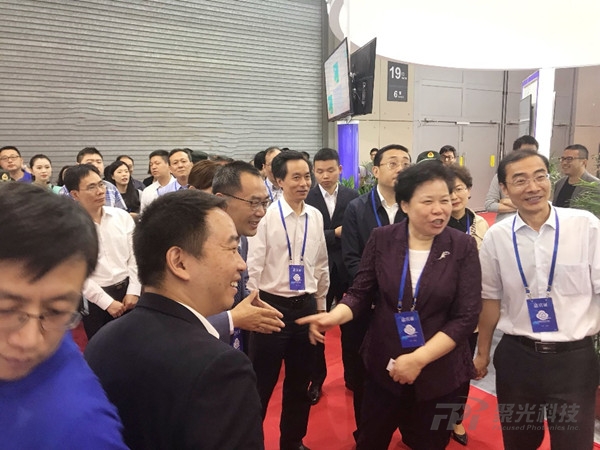 中國氣象局黨組書記、氣象局局長劉雅鳴,江蘇省副省長費高云,中國氣象局副局長宇如聰,江蘇省政府副秘書長劉大旺,中國科協科普部副部長鄭凱,南京市副市長霍慧萍等領導蒞臨中科光電展區。