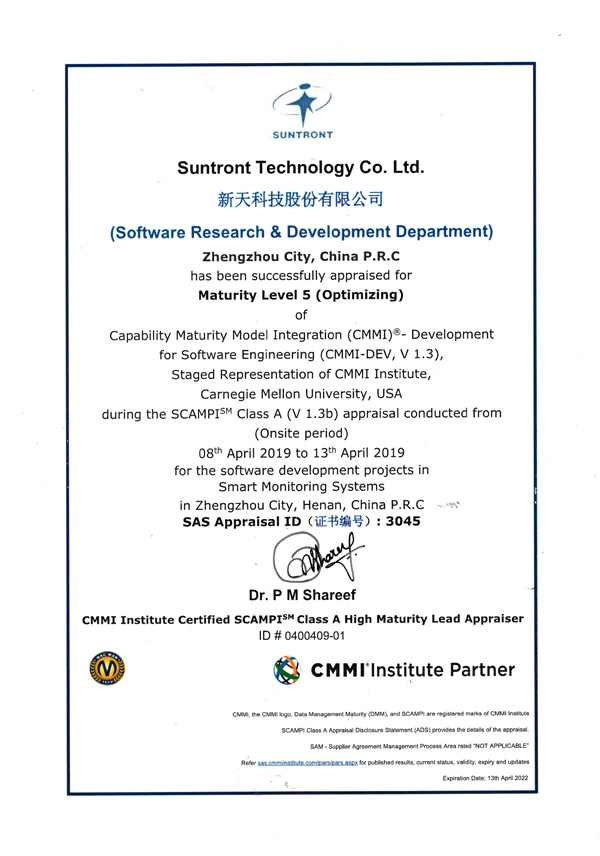 近日,新天科技股份有限公司(以下簡稱“新天科技公司”)通過了CMMI5級(jí)評(píng)估認(rèn)證并取得了證書。