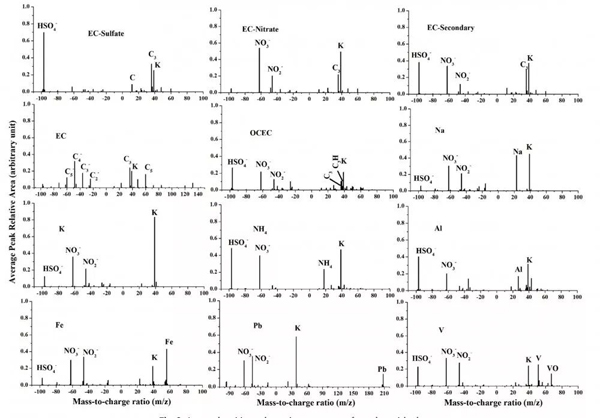 (2)含碳粒子,分為EC、EC-Nitrate、EC-Sulfate、EC-Secondary和OCEC,分別占總粒子的1.98%、10.07%、4.13%、18.84%和12.64%。