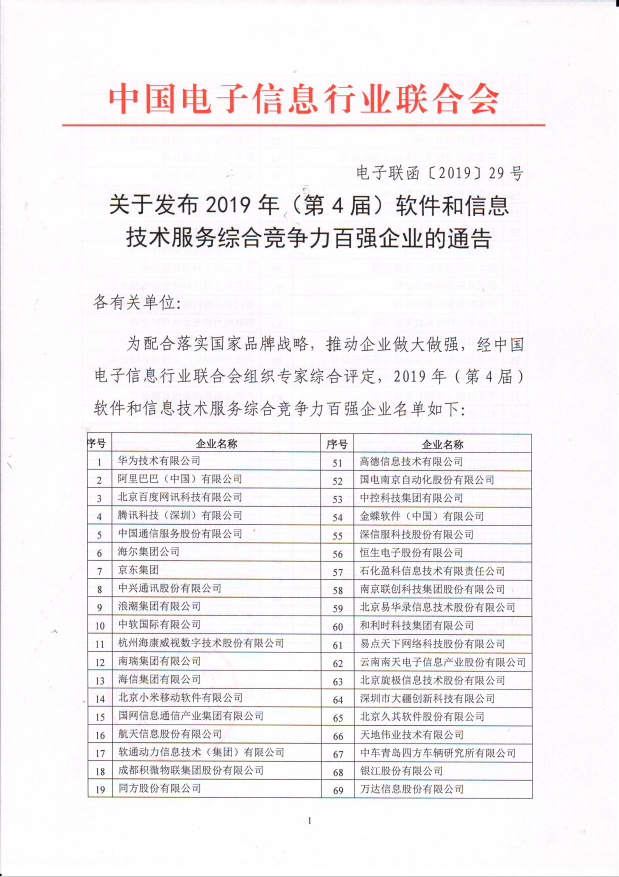 此次“2019年軟件和信息技術服務綜合競爭力百強企業”評選活動旨在深入貫徹落實黨的十九大精神,助力“數字中國”建設,促進軟件和信息技術服務企業綜合競爭力提升,專家組以企業的規模、效益及研發創新三個方面為主要依據,輔以市場開拓能力、社會責任貢獻等進行綜合評價。