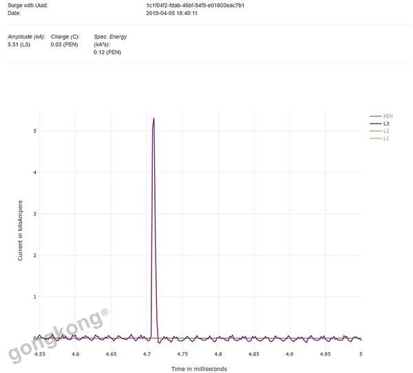在系統運行過程中,強大的Proficloud云數據處理中心對ImpulseCheck雷電監測模塊進行頻譜分析、處理與計算,輕松知曉電涌保護器每個通道的電涌電流大小、電荷量大小、能量大小,電涌保護器模塊工作狀態一目了然。