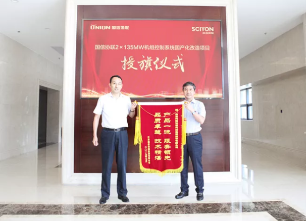2019年8月1日,江蘇國信協聯能源有限公司總經理宗偉剛、總工程師芮志清、檢修部部長談三勤、熱控專工蔣勇一行親赴科遠智慧,就國信協聯2×135MW機組控制系統國產化改造項目,授予科遠智慧“產品一流、服務領先、品質卓越、技術精湛”錦旗。科遠智慧董事長劉國耀、總裁胡歙眉、控制系統工程中心總經理方正、江蘇項目部經理姚風偉、主任工程師徐龍乾、銷售經理王琦等出席授旗儀式。