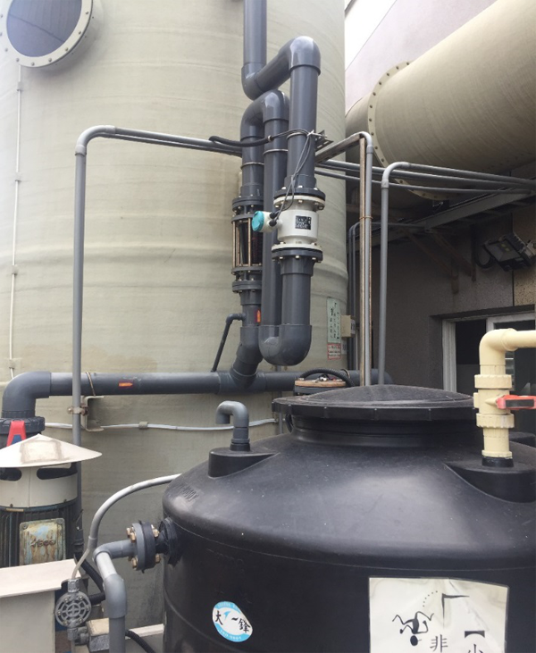 國(guó)內(nèi)某化纖紡織企業(yè)的VOC 空汙設(shè)備,在水洗式洗滌塔的管路監(jiān)測(cè)中,原來使用的是面積式流量計(jì),容易受到流體密度、壓力和粘度等因素,影響其穩(wěn)定性和測(cè)量精度;同時(shí)不符合環(huán)保要求,不能下載累積流量資料備查;環(huán)保局要求其更換電磁式流量計(jì)。在此情況下企業(yè)安裝使用凡宜科技的智能型電磁流量計(jì),不僅僅確保該檢測(cè)系統(tǒng)的穩(wěn)定性及精準(zhǔn)度,還具備流量歷史記錄功能,可以通過遠(yuǎn)端來作資料的統(tǒng)計(jì)和分析,完全符合環(huán)保要求。
