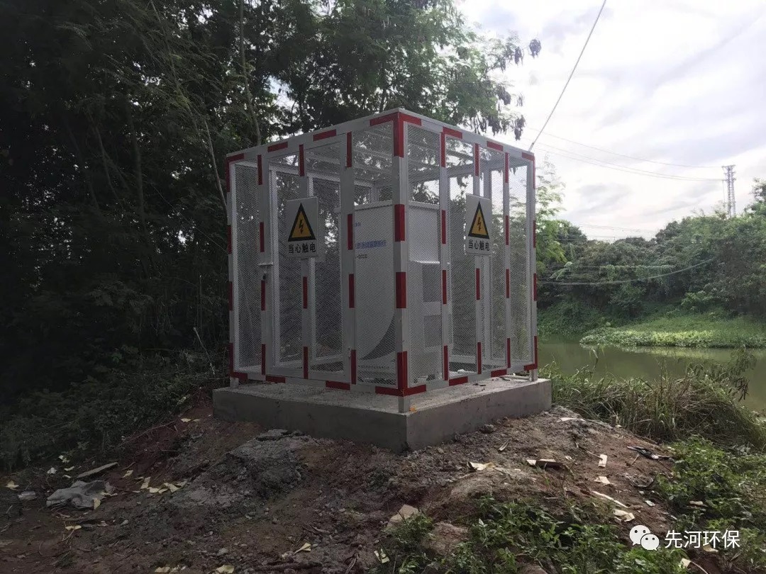 圖為先河環(huán)保水環(huán)境實(shí)驗(yàn)基地黑臭水體水質(zhì)自動(dòng)監(jiān)測(cè)系統(tǒng)現(xiàn)場(chǎng)照片