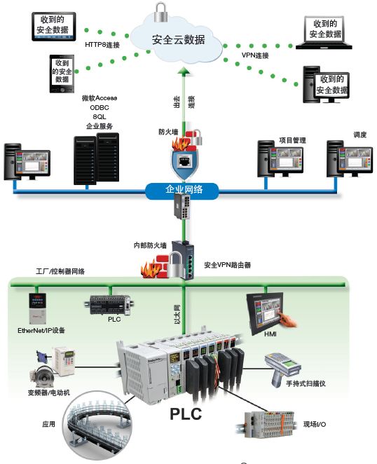 圖2 :從控制器獲取遠(yuǎn)程數(shù)據(jù)。一些現(xiàn)代控制器,具有多達(dá)七個(gè)內(nèi)置通信端口,可提供連接工廠車間和企業(yè)級業(yè)務(wù)網(wǎng)絡(luò)的關(guān)鍵功能。