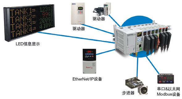 選擇自動(dòng)化控制器時(shí)需要考慮的另一個(gè)重要特性是通訊能力。應(yīng)提供多個(gè)以太網(wǎng)和串行通訊端口,以便與人機(jī)界面(HMI)、電機(jī)驅(qū)動(dòng)器和其它設(shè)備輕松集成(圖1)。這些高速以太網(wǎng)端口也可用于點(diǎn)對點(diǎn)(P2P)或業(yè)務(wù)系統(tǒng)網(wǎng)絡(luò)。對EtherNet/IP 和Modbus TCP/IP 以太網(wǎng)協(xié)議的支持,這點(diǎn)也是非常重要。