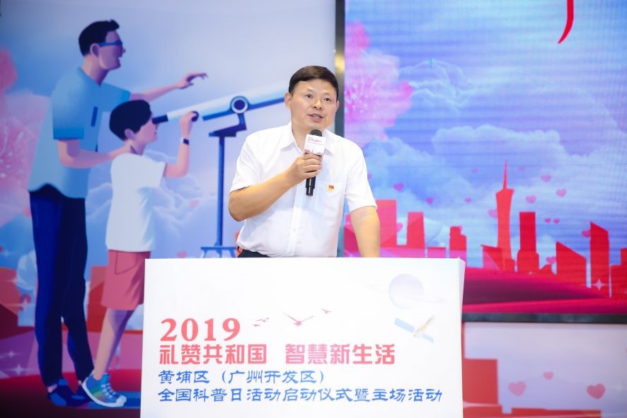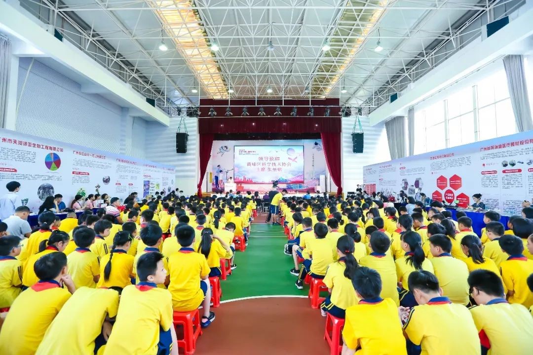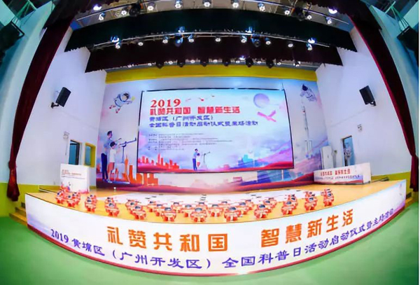 9月17日上午,以“禮贊共和國、智慧新生活”為主題的黃埔區(qū)、廣州開發(fā)區(qū)2019年全國科普日活動啟動儀式暨主場活動在黃埔區(qū)九龍第二小學拉開帷幕。廣州市科學技術(shù)協(xié)會副巡視員程志鵬,廣州市科學技術(shù)協(xié)會科普部部長黃增豪、新龍鎮(zhèn)鎮(zhèn)長李貴清、副鎮(zhèn)長何良新、黃埔區(qū)科學技術(shù)協(xié)會主席張景銘、廣州市生態(tài)環(huán)境局黃埔區(qū)分局局長李應生、黃埔區(qū)教育局副調(diào)研員黃方亮、黃埔區(qū)科學技術(shù)協(xié)會秘書長李雪光、黃埔區(qū)九龍第二小學校長周俊勇、廣州開發(fā)區(qū)科技金融服務(wù)中心總經(jīng)理邢寶偉、黃埔區(qū)公安分局、黃埔區(qū)禁毒委員會辦公室,黃埔區(qū)市場監(jiān)督管理局、黃埔區(qū)中醫(yī)藥學會等單位以及粵嵌通信、博冠光電、香雪制藥、白云山中一藥、威凱檢測、享學教育、直通教育等36家科技企業(yè)代表、區(qū)各街道代表、九龍第二小學師生共1000余人參加。