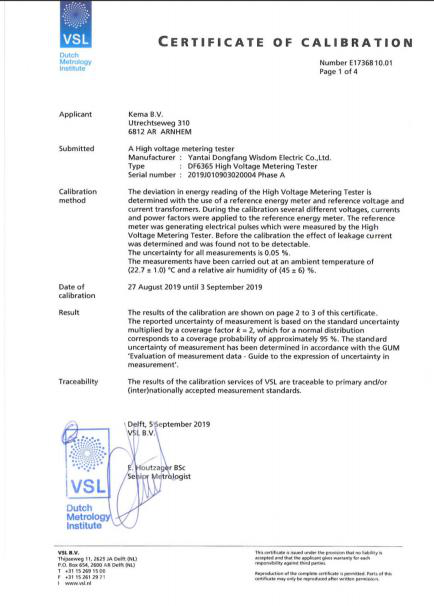 校準由荷蘭計量院高級計量師Ernest主持,兩周時間內,在不同電壓、電流、相角和頻率等測試條件下,分別測試了高壓檢定裝置準確度。在四次測試驗證中,威思頓設備均保持了極高的準確度,獲得了荷蘭計量院的高度認可。