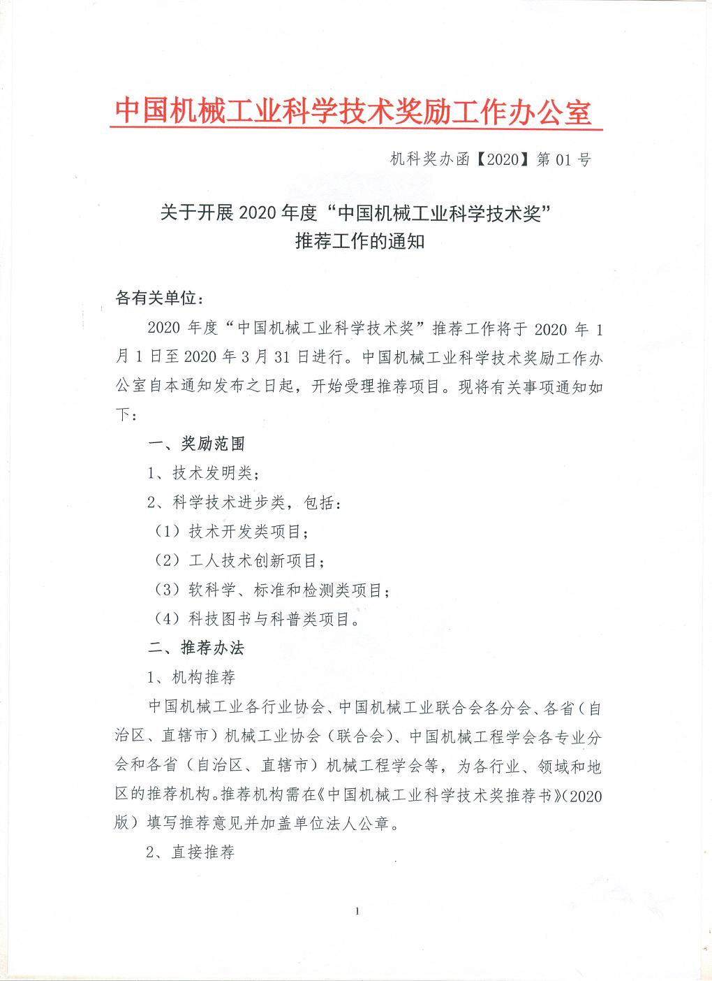 附件:關(guān)于開展中國機(jī)械工業(yè)科學(xué)技術(shù)獎推薦工作的通知