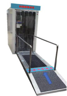 快速消毒通道,360度無死角消毒,可快速切斷病毒傳播,避免由體表攜帶病毒到新的區域??焖傧就ǖ烙尚紫竞腕w表消毒兩部分組合使用。鞋底消毒指人員通過斜坡到達通道口時系統自動感應并啟動黑色區的鞋底消毒區進行消毒,消毒完成后再吸干區停留2秒即完成鞋底消毒;體表消毒指人員通過鞋底消毒區后進行體表消毒通道,通道內的符合消毒劑360度無死角的對體表一份和裸露皮膚進行接觸消毒,只需在該區域停留10秒即可殺滅99.9%的細菌和病毒。