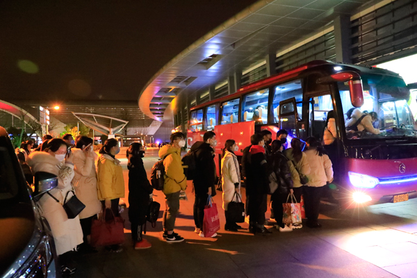 同時(shí),公司還組織了由8輛大巴車(chē)組成的車(chē)隊(duì),對(duì)這批特殊乘客進(jìn)行專(zhuān)車(chē)接送,在上車(chē)前對(duì)所有人員進(jìn)行體溫測(cè)量和消毒,并為員工安排了住宿點(diǎn),進(jìn)行必要的觀察休整,實(shí)現(xiàn)了由城點(diǎn)到站點(diǎn)、站點(diǎn)到廠點(diǎn)的三點(diǎn)無(wú)縫連接。