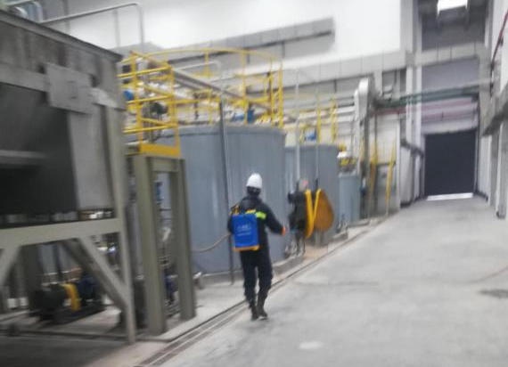 每天廠區(qū)公共區(qū)域、辦公區(qū)域進行噴霧消毒。