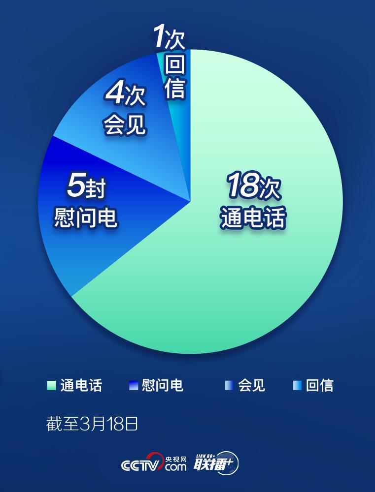 習(xí)近平從疫情發(fā)生至今,始終與外國國家元首、政府首腦以及國際和地區(qū)組織負責(zé)人保持溝通。截至3月18日,他在18通電話、5封慰問電、4次會見、1次回信等互動中,介紹中國疫情防控的舉措、進展,表達休戚與共的中國情誼,傳遞戰(zhàn)勝疫情的信心。